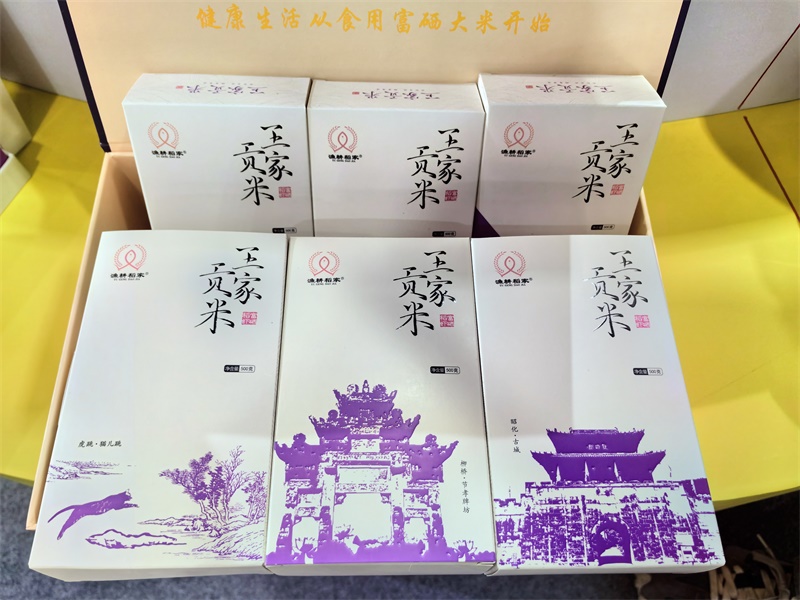 作为广元市昭化区特产,中国国家地理标志产品的“王家贡米”,也特意推出了独特的包装,每一款产品包装上都印有广元不同景区的图样。