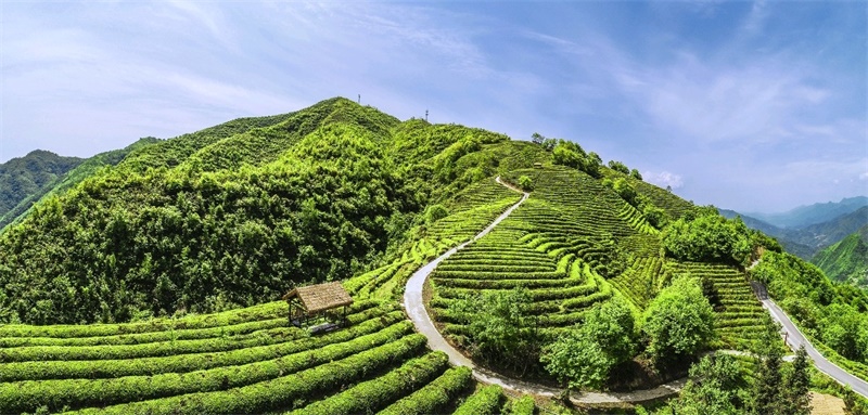 茶叶是广元春天最耀眼的绿色。三月中旬,春茶进入采摘季。旺苍县的各个茶园里满目翠绿,灰色的茶梗与茶叶间冒出新芽,在村民们的一捏一提间,一片片嫩芽被快速摘下,收入篓中,收获的喜悦在园区传递。