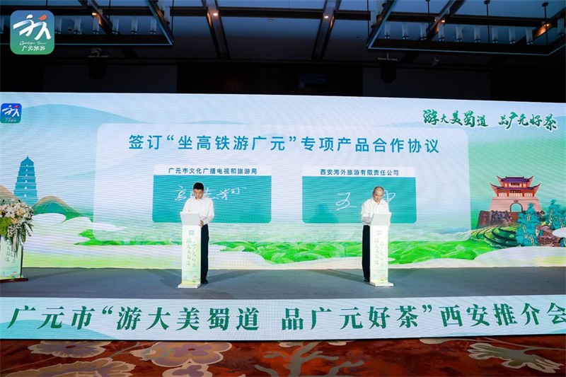 推介会上,广元市文化广播电视和旅游局与西安海外旅游有限责任公司签订了“坐高铁游广元”旅游产品合作协议。推出了蜀道寻踪徒步游、亲子互动欢乐游、踏青赏花逍遥游、采茶品茗体验游四条旅游线路。同时,为方便大家坐高铁游广元,广元还与西安海外国际旅行社合作推出了“坐高铁游广元”蜀道三国文化主题一日游、二日游、三日游线路,涵盖剑门关、翠云廊、昭化古城、皇泽寺、千佛崖等重点景区。