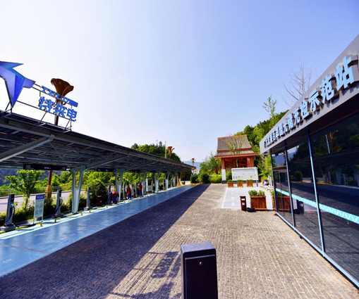 百草园充电站由广元发展集团下属广元特来电新能源科技有限公司建设,位于广元利州区德缘路百草园景区东入口右侧,总面积约280平方米,充电板块配置2个直流大功率液冷超充终端和18个直流快充终端,可满足大、中、小各类车辆充电所需。光伏板块总装机规模59.4Kwp,采用“自发自用、余电上网”消纳模式,每年可发电约5.3万度。储能板块采用全新磷酸铁锂电池,最高可储存电能135度。