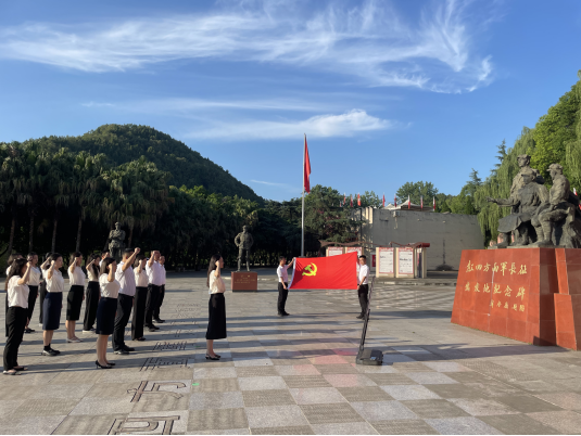 “苍溪县红军渡是红四方面军长征出发地、强渡嘉陵江战役纪念地、全国爱国主义教育示范基地。”在苍溪红军渡,全体党员聆听讲解的同时,认真瞻仰长征出发纪念碑、革命烈士纪念馆,参观红军街、罗青长纪念馆、渡江指挥部旧址等。随后,在红军渡将帅广场,广元市委副秘书长、广元市公务服务中心主任王咏带领全体党员,重温入党誓词,表达守初心、担使命、勇作为的决心和信念。