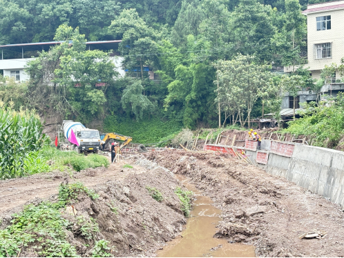 6月24日上午10点,伴着盛夏的骄阳,记者走进位于旺苍县东河镇东郊村的瓦窑沟重点山洪沟治理工程施工现场,映入眼帘的是一幅热火朝天的建设景象:运输物料的车辆来回穿梭,挖掘机伸着有力的臂膀进行混凝土浇灌,工人有的忙着平整浇灌入模的混凝土、有的忙着支模……现场井然有序,工人各司其职。
