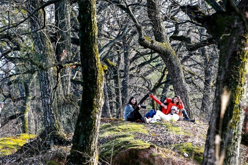 (苍溪县雍河乡乐园村古青杠林,共有近200多棵古青杠树,树龄约1500年,最大的胸径70-80厘米,生长在长达1000米,宽不足10米的山梁上。长期以来受到了当地政府和群众的有力保护,得以延续至今。刘仁 摄)