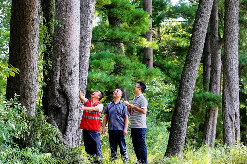 (朝天区纪检干部、朝天区临溪乡桃树村护林员开展古树普查、巡查保护等工作。唐彪 摄)