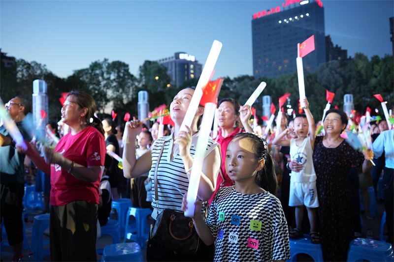 活动在《女儿河》优美的旋律中拉开帷幕。随后,伴随着优雅欢畅的吉他、萨克斯等乐器和优美曼妙的舞姿,《羊角花开》《我的未来不是梦》《对面的女孩看过来》《龙的传人》《我和我的祖国》……一首首耳熟能详的歌曲,吸引现场观众情不自禁地跟随着音乐的律动开启了跟唱模式,把“放歌嘉陵江”群众歌咏活动推向了高潮。