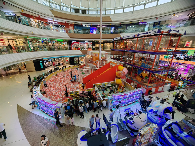 傍晚时分,矗立在南河畔的万达广场灯光璀璨。商场里,众多时尚品牌汇集,各式服装接连上新;超市里,一排排货架上摆放着琳琅满目的商品,持续激发人们的消费热情。