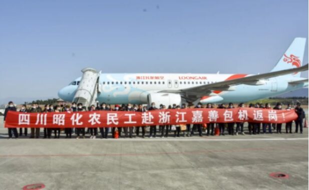 (图为今年2月,广元昭化农民工包机出行) |