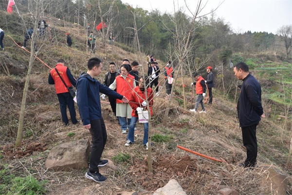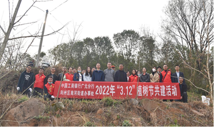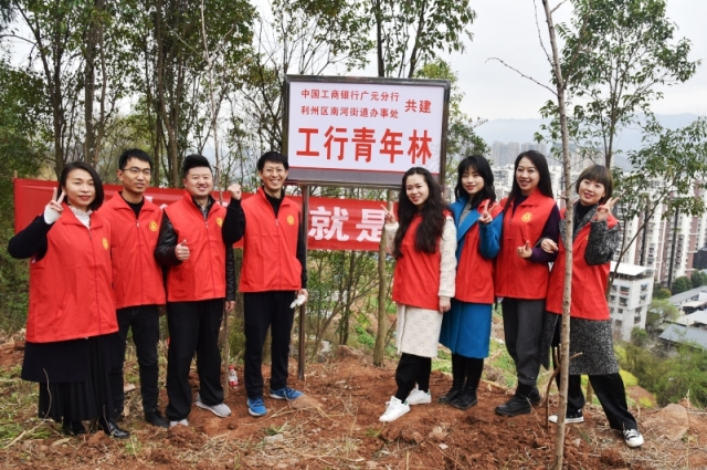 “南河街道办事处管理防洪大堰时,发现建设后的水土保持依然存在问题。按照属地管理原则,南河街道办事处就发动社会力量、企业和个人开展‘我为南山植棵树’活动。活动从2012年开始,工行广元分行就年年坚持种植,沿着防洪大堰植下红杨树2公里长,共计种植2000余棵。”该街道办事处副主任武剑称,去年,按照利州区政府2021年“3.12”植树节活动的工作要求,将接官亭社区所辖的南山7亩坡地作为工行广元分行与南河街道办事处的共建项目,项目名称定为“工行青年林”,该行青年干部员工于植树节当天又种植了200余颗银杏树。该行表示,工行广元分行胸怀“国之大者”,以工行青年力量助力生态环境保护。