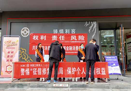 四川新闻网消息(李晓蓉 记者 李全民)3月13日至15日,工行广元分行开展了3·15消费者权益保护系列宣传活动,以深入践行金融工作的政治性、人民性,保护金融消费者权益,切实履行消费者权益保护主体责任。