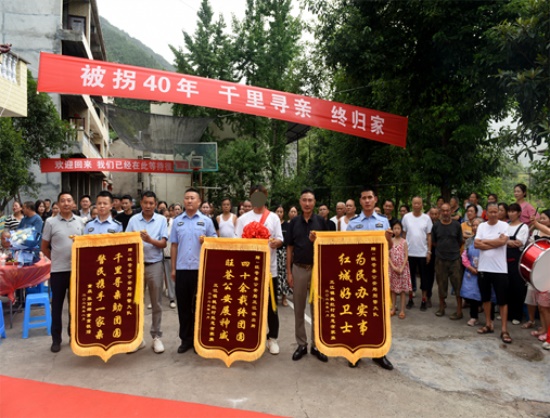 40年里,“柱娃子”的亲人一直没有放弃寻找,旺苍县公安机关也始终没有放弃追寻“柱娃子”的下落,但辗转多个省市寻找都无功而返。随着公安信息技术手段进步,旺苍公安再次安排专人对案件进一步梳理,2022年发现了一丝线索,先后多次派精干警力辗转山东、河南再次进行摸排,同年11月终于在河南省发现一童姓男子疑似当年被拐卖的“柱娃子”。通过DNA比对,确定了该男子就是被犯罪嫌疑人张某拐走的“柱娃子”。然而“柱娃子”被拐时仅1岁多,毫无任何记忆,加之现在也结婚生子,对于突如其来的消息“柱娃子”感到无比震惊,一时无法接受。旺苍公安办案民警又经过多次耐心细致的给双方家庭做工作,妹妹蓉蓉也主动和“柱娃子”联系,渐渐地在大家的共同努力下,“柱娃子”接受了远在1100多公里外的旺苍这个老家,并相约在今年8月下旬“柱娃子”携妻儿一起回旺苍与亲人团聚。