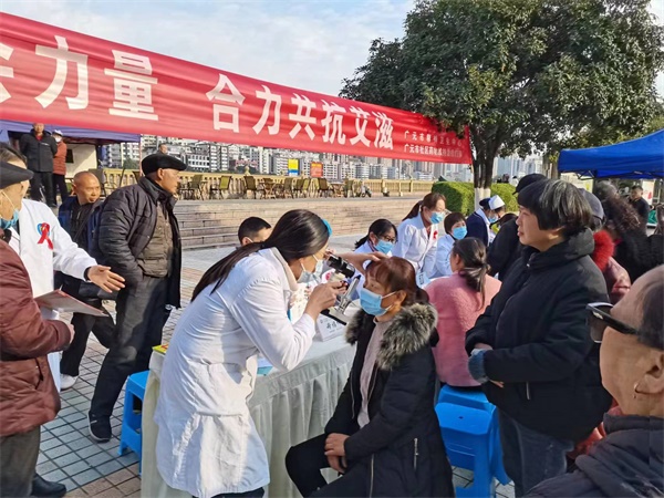 四川新闻网消息(刘蓉 记者 李全民)2023年12月1日是第36个“世界艾滋病日”。当天上午,该院市第三人民医院组织医护人员在南河广场开展了“凝聚社会力量,合力共抗艾滋”的主题宣传活动。
