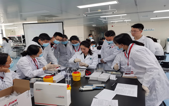 来自广元市各医疗机构的40名学员参加28日—29日的实践操作培训,授课老师认真细致地为大家讲授实验原理,演示实验操作,手把手带教。实践技能培训内容包括血型鉴定、抗人球蛋白实验、吸收放散实验、交叉配血、疑难血型鉴定、疑难交叉配血等实验操作。专家与学员们互动频繁,课堂气氛活跃。