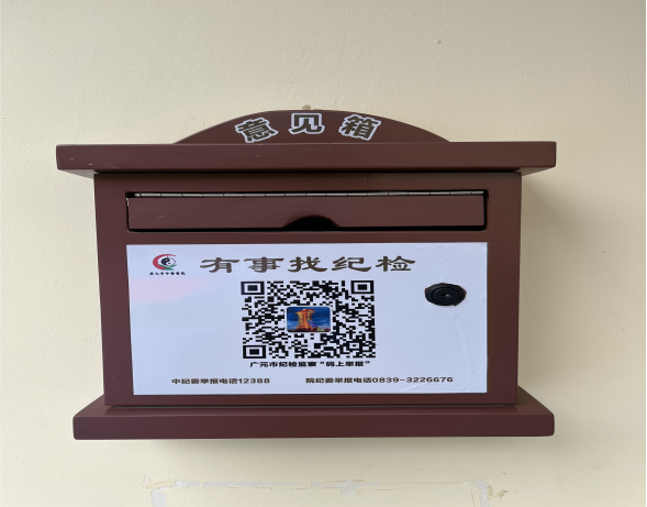 四川新闻网消息(张金波 记者 李全民)为有效整治医院行业作风,广元市中医医院多举措拓展监督举报渠道,在门诊大厅、住院部、行政楼门厅等醒目位置设置“有事找纪检”意见箱,广泛接受患者和群众的直接监督。