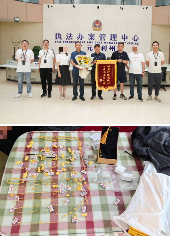 情况紧急,专案组立即协调铁路公安开辟绿色通道,并迅速派员赶赴嫌疑人所在车次。凌晨5时45分,民警登车将该四名犯罪嫌疑人成功抓获,将被盗的黄金首饰69件、黄金70余克、黄金手表1块以及钻戒1枚全数追回,总价值60余万元。