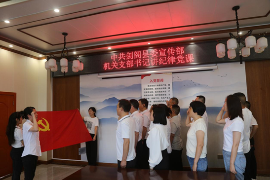 参观结束后,剑阁县委宣传部机关支部书记为大家讲授了一堂生动的纪律党课。机关党员干部重温入党誓词,再一次庄重许下承诺。