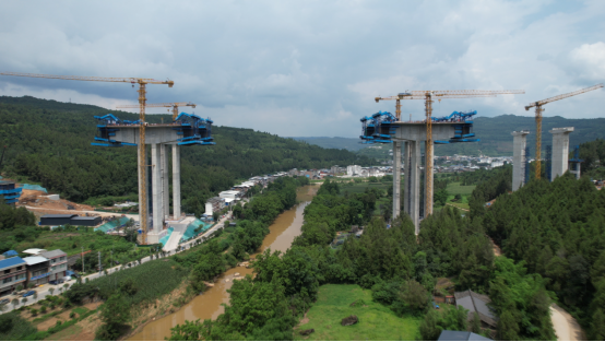 G5京昆高速广绵段扩容工程塔子坡西河特大桥位于剑阁县武连镇,横跨西河及108国道,左线全长656米,右线662米,共有84个桥礅,最高的桥礅离地58米。从4月份开始,大桥进入连续钢构施工阶段,这段时间,工人们冒着高温天气进行混凝土浇铸、灌浆等工艺,每个月可向前延伸50米。截止目前,大桥4个主墩共计660米的连续钢构已完成了200米。
