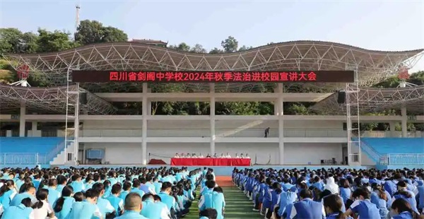 9 月 4 日上午 ,剑阁中学在运动场召开了 2024 年秋季纪律常规整顿暨安全教育大会,为全校师生带来了别开生面的开学第一课。学校党委书记罗平、德育副校长杨阳、法治副校长何亮、德育一线正副主任、各年级德育组长、全体班主任和全体学生参加了此次大会。
