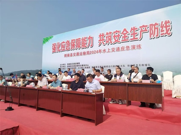 为进一步提升全县水上交通应急保障能力,筑牢安全生产防线,9月20日,广元市剑阁县交通运输局在剑阁县江口镇颜家角水域开展水上交通应急演练,邀请县人大代表、基层群众、媒体记者、企业代表、律师代表等现场观摩。
