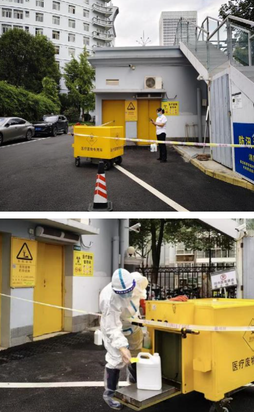 演练以医疗废物转运人员在院内转运时发现医院二住院楼东侧医疗化学性废液桶意外破损为背景开展模拟演练。事故发生后,转运人员立即向总务科报告,总务科通知院感科,院感科向分管副院长报告;分管副院长指示启动医疗化学性废液意外事故应急处置预案。