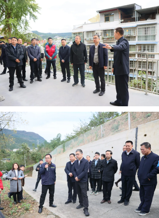 沈伟志一行先后前往剑阁县普安镇滑坡应急处置点,广元经开区西城中学崩塌应急处置点、石龙二组滑坡应急处置点,四川省区域应急救援广元基地就滑坡治理、高位崩塌、地质灾害应急处置救援队伍建设等情况展开深入调研。
