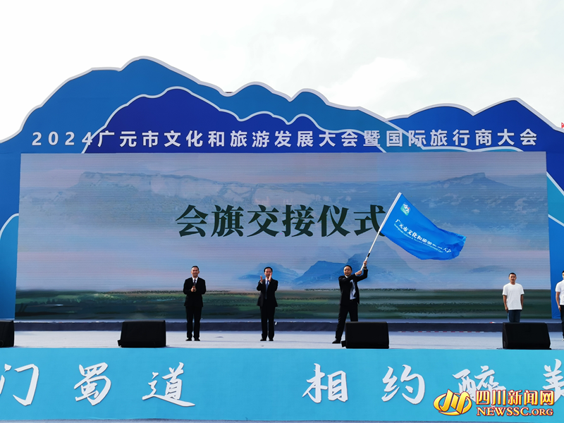 11月21日,2024广元市文化和旅游发展大会暨国际旅行商大会在剑阁举行。会上,广元市人民政府副市长伍荣华向2025年广元市文化旅游发展大会承办地利州区授会旗。