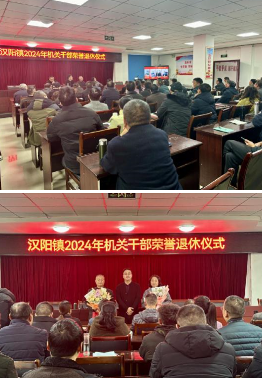 12月6日,广元市剑阁县汉阳镇为光荣退休的聂文清同志、李惠同志举行退休仪式。该镇党委书记张轩出席活动并讲话,镇领导、站所办负责人等参加活动。