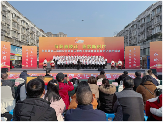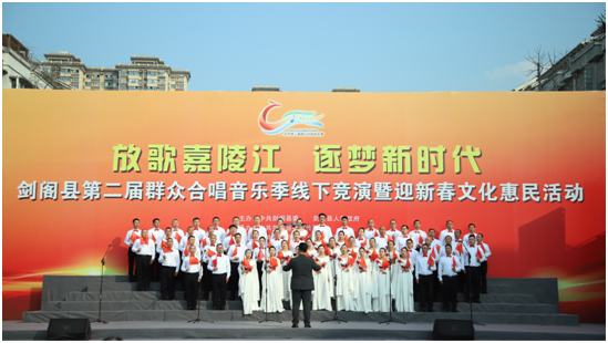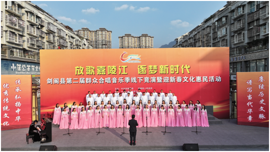 12月31日,以“放歌嘉陵江 逐梦新时代”为主题的剑阁县第二届群众合唱音乐季线下竞演暨迎新春文化惠民活动在下寺镇天一世纪广场举行。经过前期线上展演初选,从全县各乡镇、机关单位脱颖而出的12支合唱队伍齐聚一堂,用歌声展现新时代剑阁人民的精神风貌,为群众带来了一场视听盛宴。