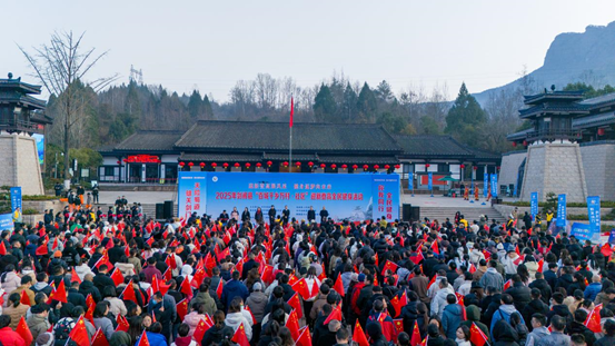 1月2日,2025年剑阁县“百城千乡万村·社区”迎新登高全民健身活动在剑门关景区举行,吸引来自全县各机关企事业单位干部职工、社区居民及基层群众健身团队等1200余名健身爱好者广泛参与。