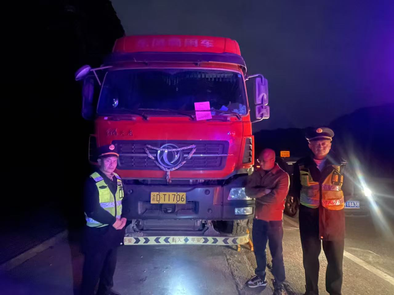 “请停车接受检查!”剑阁县交通运输综合行政执法大队执法人员蒲强示意一辆满载货物的大型货运车辆靠边接受检查。G108线下寺至普安快速通道又名下普路,是连接剑阁新老县城的重要通道,也是在外务工人员的重要归乡路,为了保障在外游子回乡之路安全稳定,剑阁县交通运输综合行政执法大队缜密部署,于春运首日凌晨,在下普路开展夜间执法行动,重点检查过往大型货运车辆,重点打击超限超载、货物抛洒行为。此次行动出动执法人员5人、检查车辆6台,查处没有采取必要措施防止货物脱落、扬撒的货运车辆2台。