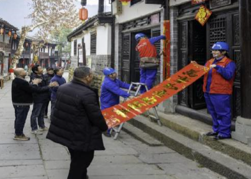 1月22日,国网四川广元供电公司昭化供电服务站员工对返乡务工人员开展安全用电宣传,同时义务帮助返乡人员张贴春联,营造过年节日氛围。