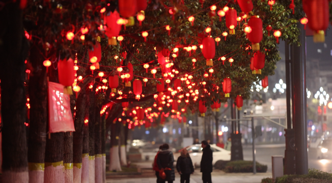 “今天刚刚出来逛街,看到这树上挂满了红灯笼,很喜庆,红彤彤的,就感觉年味越来越浓了,挺好的。”市民张利容说。