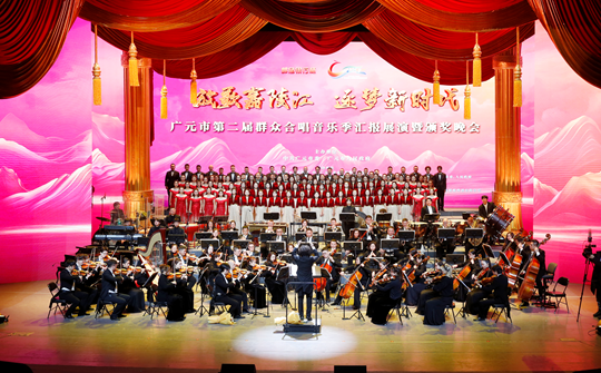 晚会在《红旗颂》节选中拉开序幕,随后,《观沧海》《撞歌》《爱永在》《四渡赤水出奇兵》《黑猫警长》《破阵子·醉里挑灯看剑》《小雅·鹿鸣》《忆秦娥·娄山关》《走过剑门关》《我爱你中国》等第二届群众合唱音乐季中的优秀作品依次上演。气势恢宏的交响、热情洋溢的旋律、声情并茂的演唱激荡全场,让观众深深沉浸在合唱艺术的独特魅力中。晚会上,全国声乐金钟奖获得者张怡演唱《广元情》《春天的芭蕾》,高水平的演唱赢得现场阵阵掌声,将晚会推向高潮。晚会尾声,演出人员与现场观众一起合唱《我和我的祖国》,为晚会画上圆满句号。